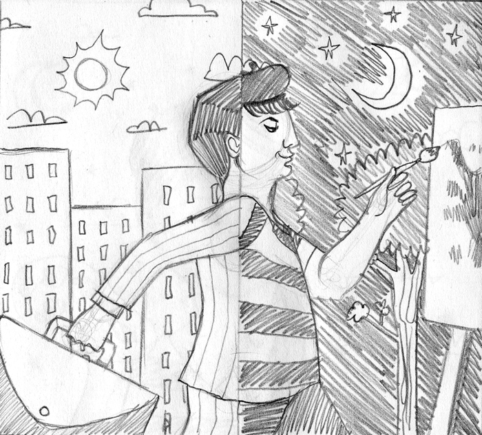 I worked with the wonderful Sheila Sampath on this project and here are a few of the roughs for the assignment: